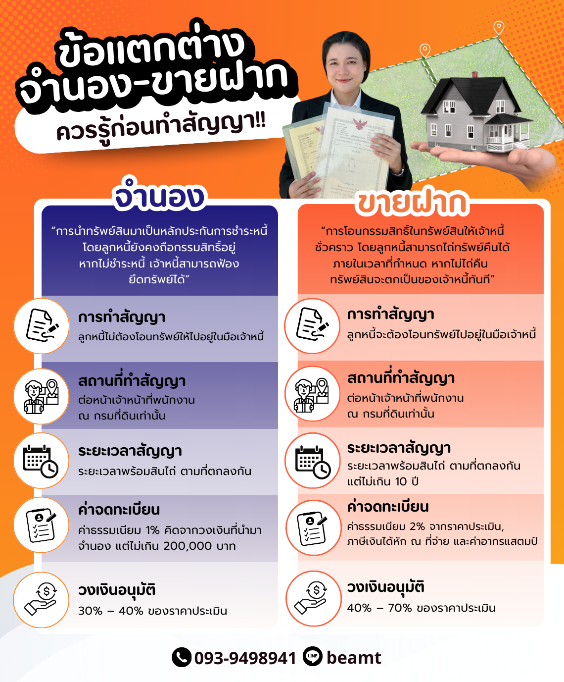 รับขายฝากบ้าน ที่ดิน คอนโด อสังหาริมทรัพย์ทุกประเภท ให้วงเงินสูงสุด 60% ของราคาซื้อขาย